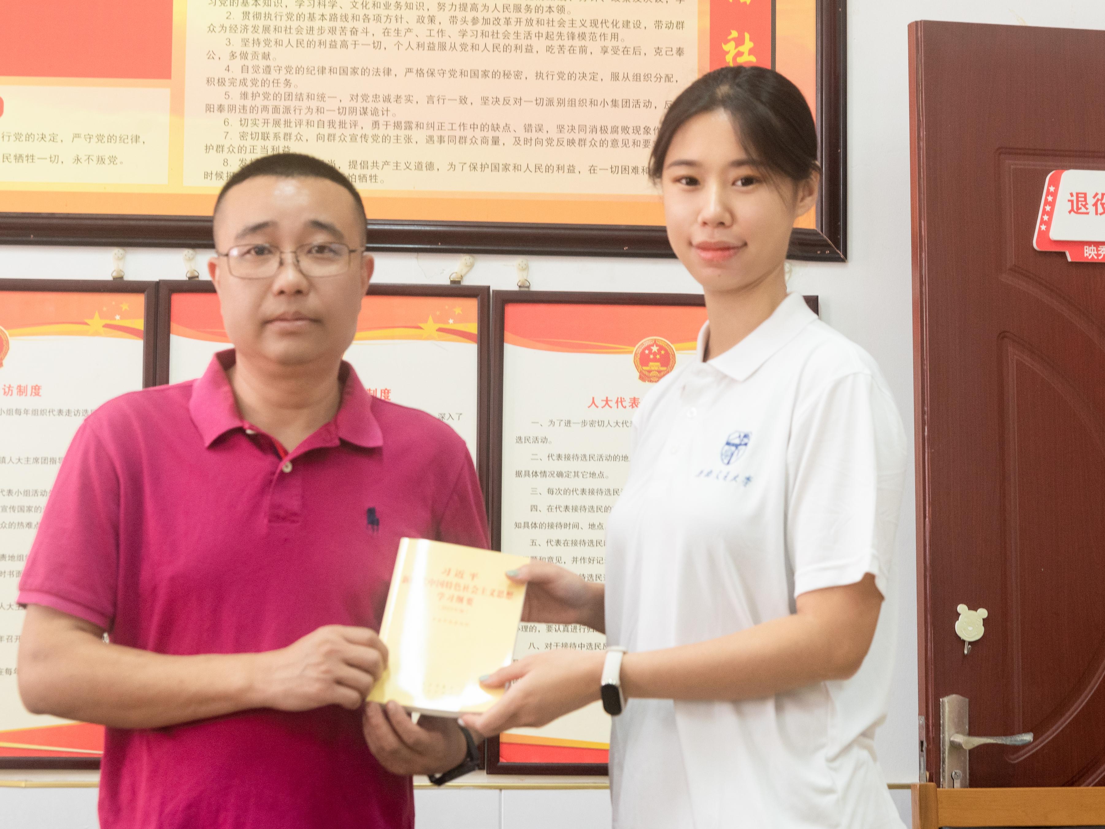 8月13日上午,团队抵达映秀镇秀坪社区。在社区的协助下,团队展开了赠书仪式。作为“铸牢中华民族共同体意识”的宣传起点,团队向秀坪社区赠送了包括《习近平新时代中国特色社会主义思想学习纲要》、《非彼无我 美美与共:中华民族的交融与共同体意识》、《铸牢中华民族共同体意识下西部地区地方政府能力建设》、《毛泽东选集》在内二十余本书籍,旨在引导更多人深刻理解有关民族工作的思想,培养共同体意识。秀坪社区副主任邹强代表社区接收赠书,并表示书籍非常有意义,十分感谢18H