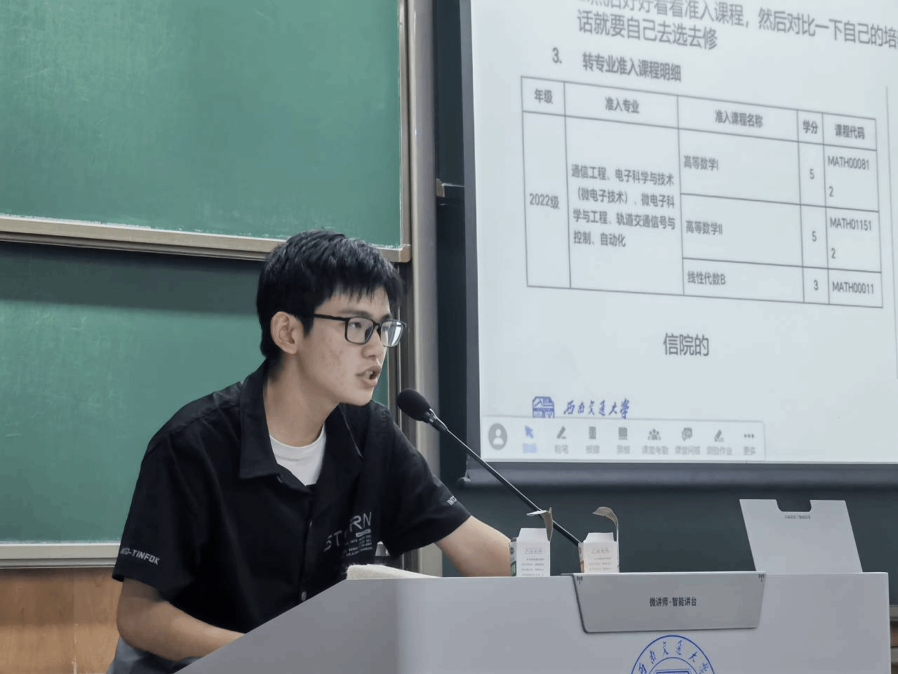 随后,由李明宇学长简单介绍了转专业细则,和他的转专业经验,希望同学们学业有成,前程似锦。