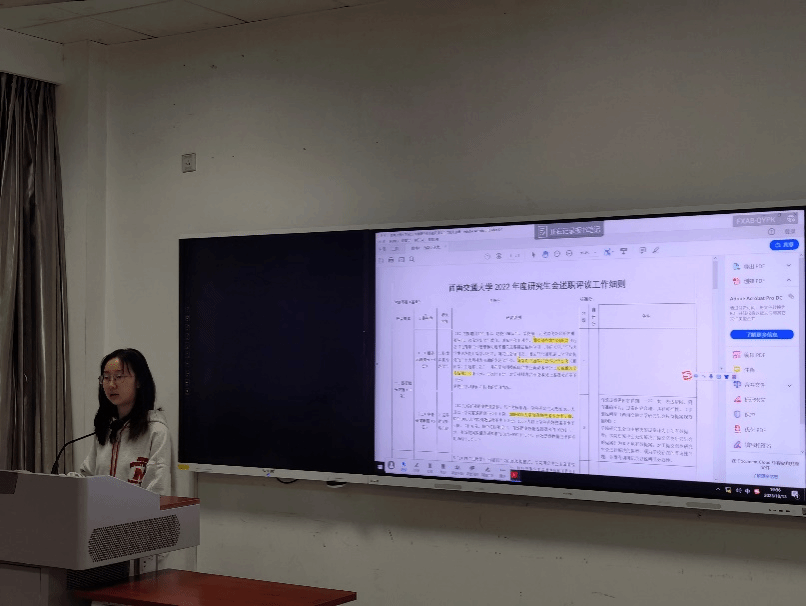 大会第一项议程是介绍会议主旨及整体工作的经验分享,由研会22级主席龚姝月向新任主席团及部长们详细说明了上一学年研会完成的主要工作内容和主要活动的时间节点。