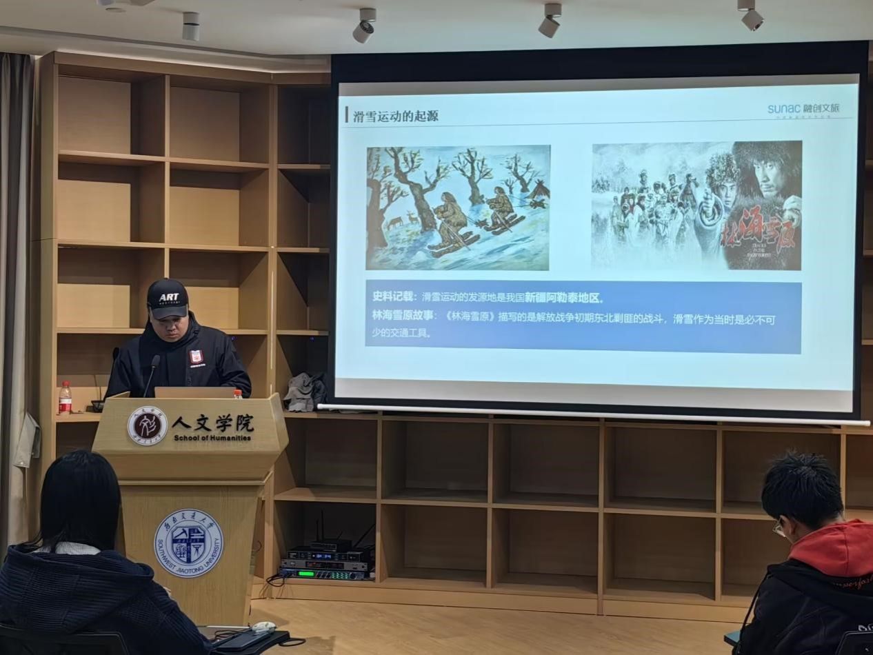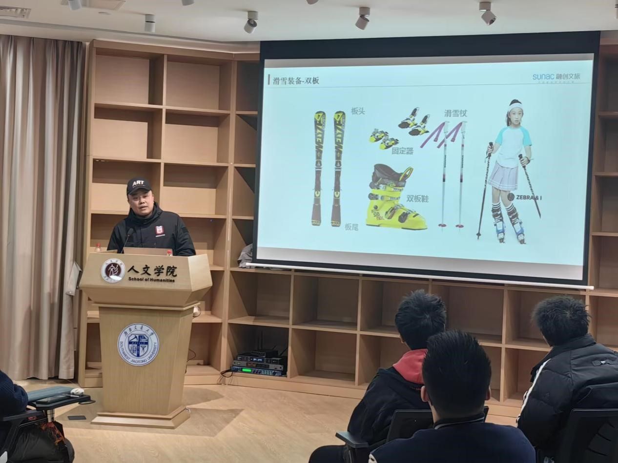 讲座上,王教练为同学们讲述了自己的滑雪经历并进行了经验分享。对我国乃至世界从冰雪运动起源就行了科普教育。