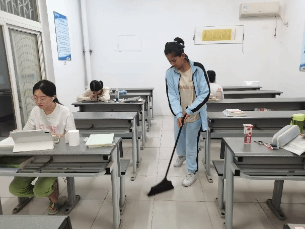 图1 志愿者正在清理自习室