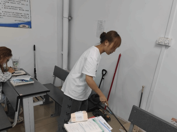 活动开展过程中,志愿者按照所划定的班次、执勤地点,有序前往所执勤地点开展活动,在不打扰自习室内原有自习同学的前提下,认真负责地进行自习室卫生环境的清洁工作,包括自习室公共地面自习室桌椅的清洁、自习室废弃物的整理处理、自习室无人认领物品的收集分类处置等。