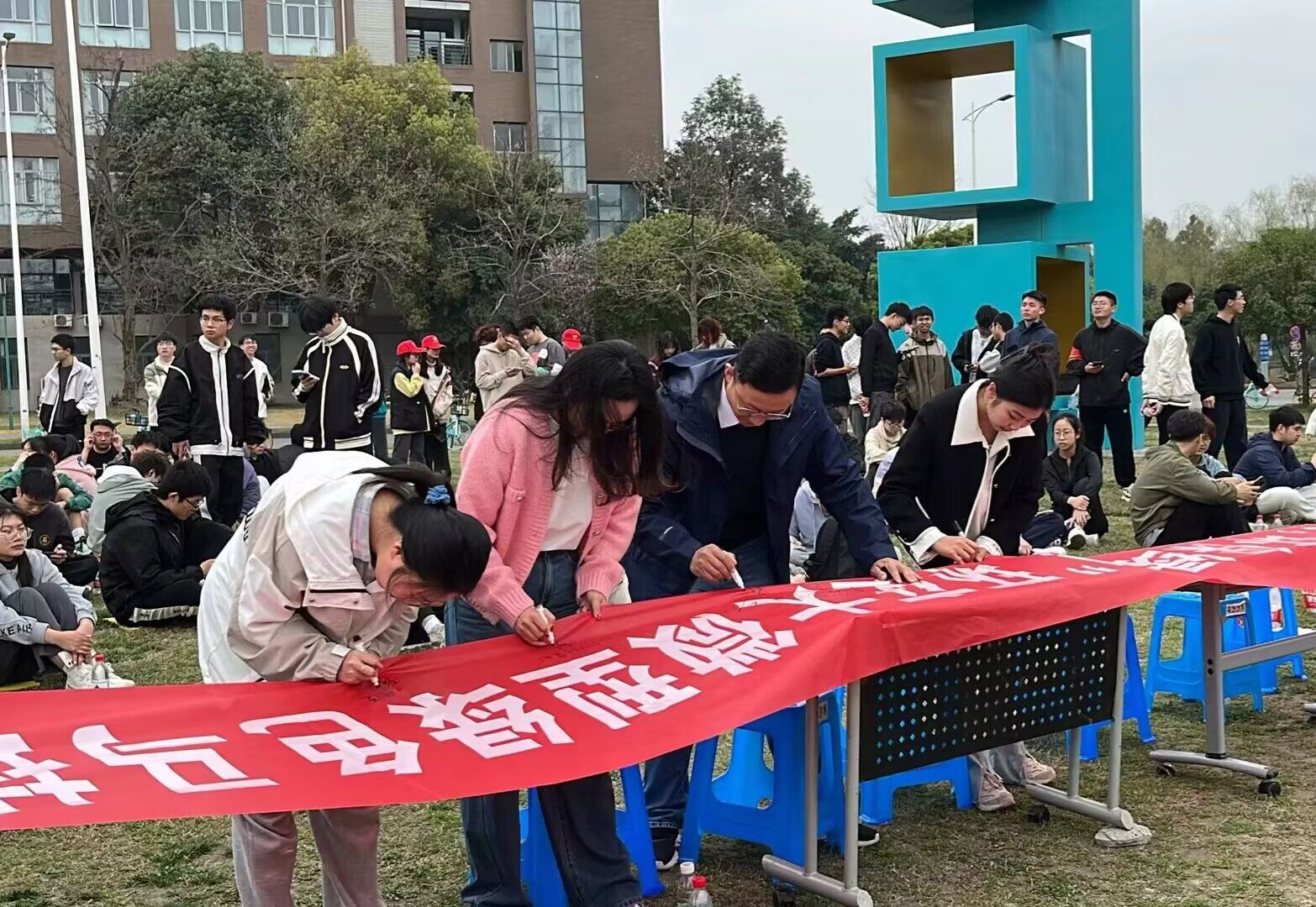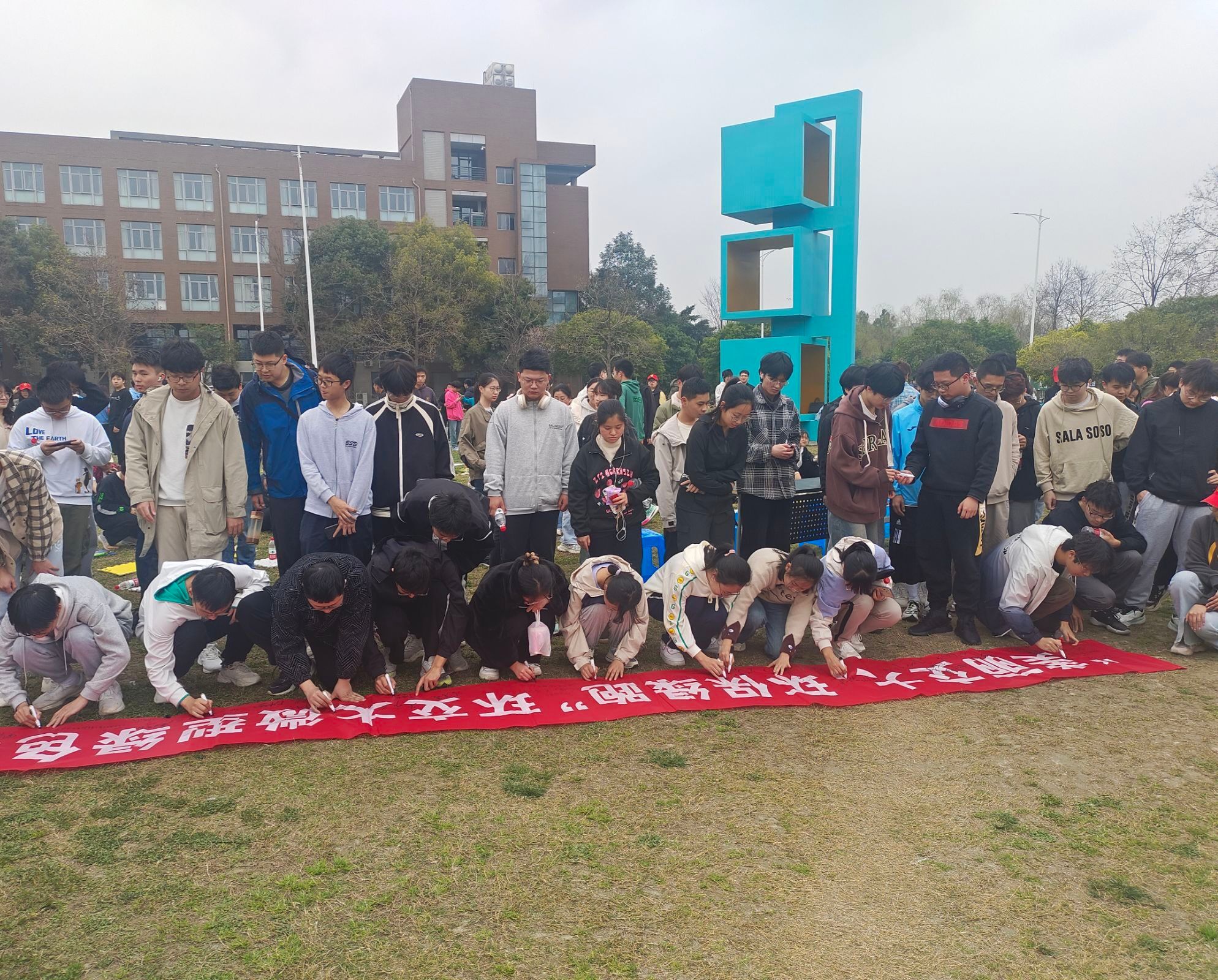 本次活动吸引各学院130余名同学参与,跑步正式开始前老师和同学们在横幅上签名或写下环保标语并合影留念。