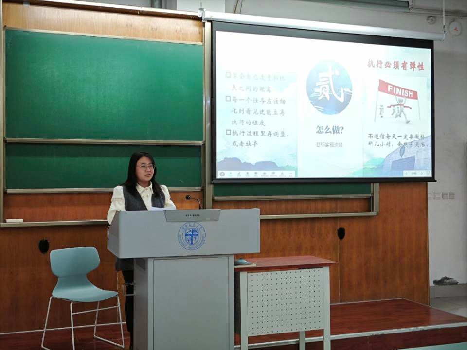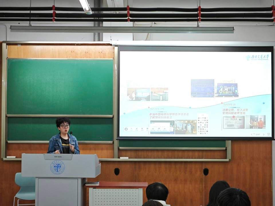随后,薛怡然同学结合自身经历针对如何开始尝试竞赛、如何平衡竞赛与课程学习、竞赛经历给自己带来什么收获展开了详细分享。她指出一个好的负责人是至关重要的,负责人将对队伍整体的工作进度,专利申请,团队分工等进行调配和指导。同时是指出竞赛的重要性,不但能够提升自己的知识面,同时能够对日后的学习产生至关重要的影响。