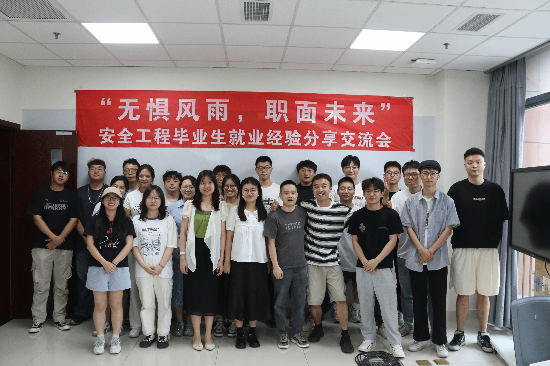 为了能够使同学们认清就业形势,洞悉就业需求,掌握就业经验,充分发挥择业就业方面的朋辈引领作用,“青春就业大讲堂”之研23级安全工程专业就业分享会于5月18日在X30305举办了一场别开生面的就业分享会。分享会的主题是“无惧风雨,职面未来”,本次分享会邀请了2020级优秀毕业生杨昕昱、蒋志林、汪静作为分享嘉宾,研23级安全工程一班班长许权担任主持。