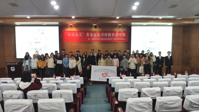 青年志愿者协会和学生园区自我管理委员会在图书馆一号报告厅举办了“蓉你说艾”青春健康同伴教育讲师赛。本次比赛邀请到学生工作部宿舍园区学生管理科副科长刘颖老师、宿舍园区学生管理科海迪拉老师,18H