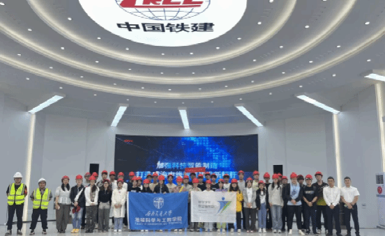 就业指导中心指导老师李林遥带队前往中铁十一局进行课外实践活动。中铁十一局项目部总工向各组织学生骨干介绍了成渝中线铁路四川段工程概况。各组织学生骨干跟随项目总工在项目部展厅先后参观了中铁十一局发展历程、盾构机“成渝号”模型、VR安全体验区。
