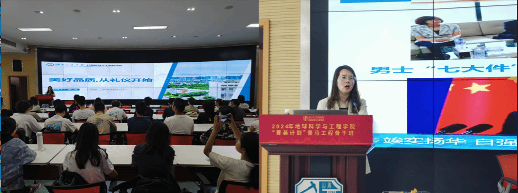 开展工作礼仪培训。计算机与人工智能学院辅导员徐洁从“仪容仪表、行为举止、服饰着装、人际沟通”四个方面展开讲座。着重强调了各组织学生骨干需具备良好的精神风貌和端庄的行为举止,并针对服饰搭配和人际交往技能,提供了专业的指导和建议。