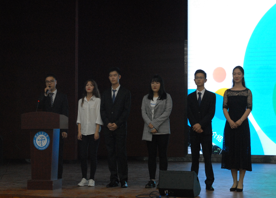 开场舞过后,学生会主席严榆凡代表学生会全体成员对新生们的到来表示欢迎,严榆凡表示,学生会是一个始终坚持“服务为同学,为了一切同学,为同学的一切”的学生组织,立足“自我服务,自我管理,自我监督,自我教育”的理念,为促进学生全面发展、丰富课余生活而不懈努力。接着学生会的部长们依次介绍了学生会办公室、科创部、活动部、体育部、宣传部、辩论队、文艺部、生活部、团建部、学习部共十大部门。部长们出色的宣讲迎来了同学们的阵阵掌声。