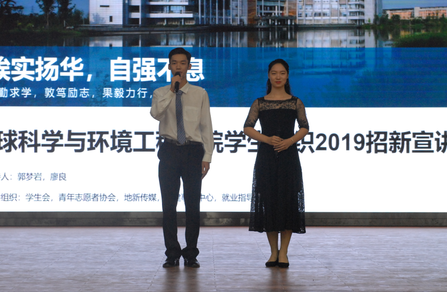 2019级全体新生和学院各学生组织参加此次晚会。晚会由学生会文艺部廖良、郭梦岩主持。