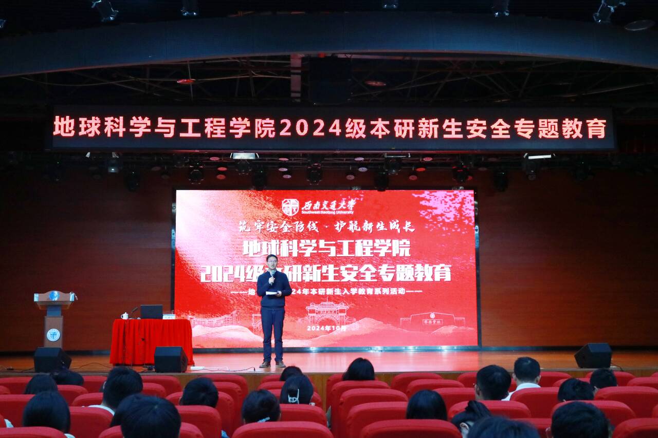 于二食堂三楼开展了2024级本研新生安全专题教育。学院团委书记杨都强以“筑牢安全防线·护航新生成长”为题作安全专题教育。