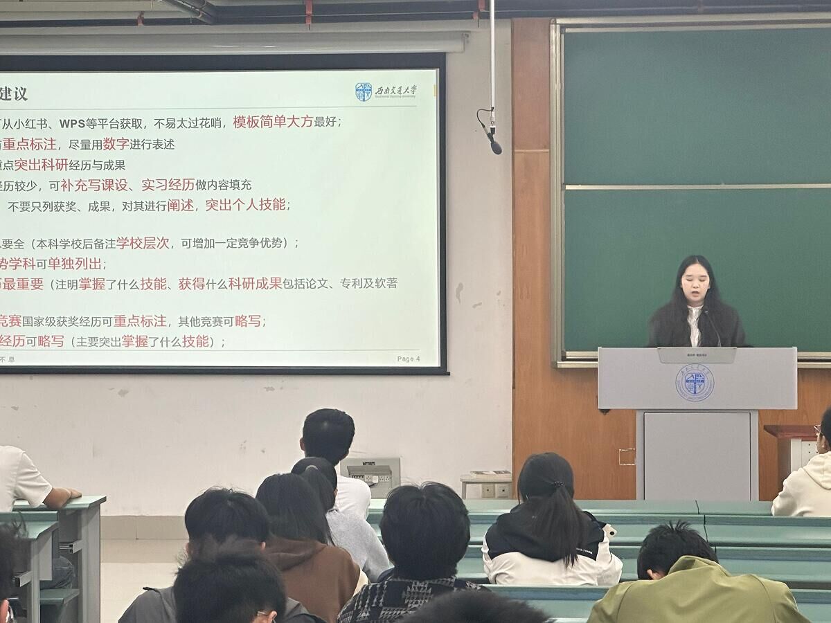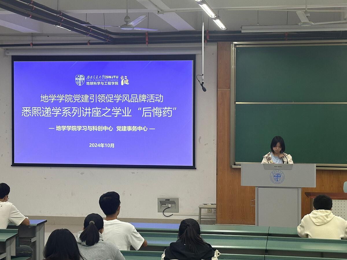 学习与科创中心于10月31日晚在X4352教室举办悉熙递学系列讲座第2场—学业“后悔药”学业生涯规划讲座。本次讲座特邀优秀学生代表——21级资源勘查工程徐嘉茜、21级测绘工程彭路鹏为主讲人,结合“大学期间关于学习最后悔的事”这一主题,为同学们呈现一场有趣且内容丰富的学业规划主题讲座。