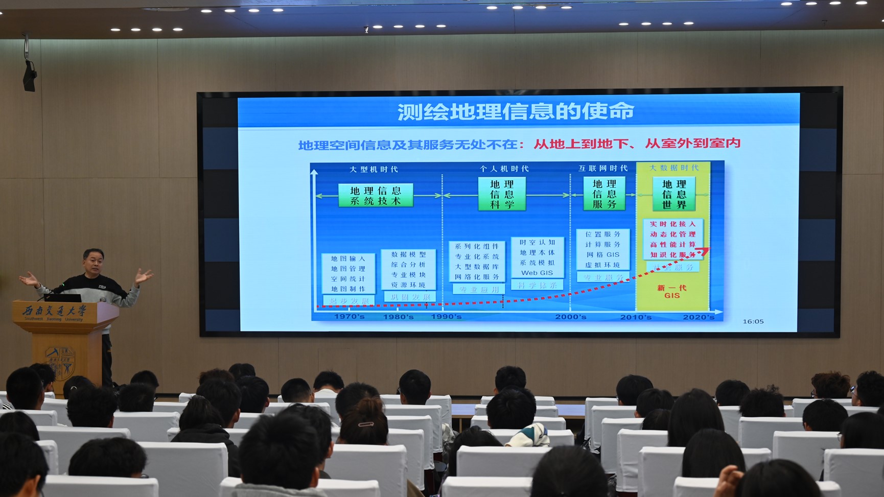 在图书馆二号报告厅教室成功举办了测绘类专业新生认知教育大会。活动由2024级本科辅导员陈荩娜主持,朱庆教授担任主讲人,测绘类新生辅导员姜茜及全体2024级测绘类专业新生参加。