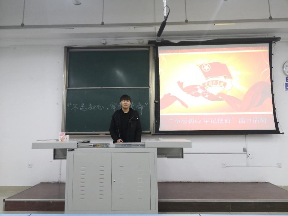 2018年11月27日下午,2016级遥感第一团支部在X2420进行了“不忘初心 牢记使命”团日活动。支部应到24人,实到21人,两人因上课请假,一人有事请假。