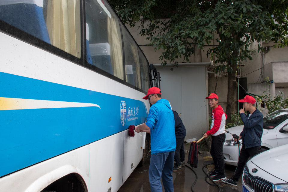 青年志愿者们会在每月13日开展清洗校车活动,给同学们一个舒适干净的乘车体验,在马路上走出属于交大的特色,塑造交大形象,激发同学们爱护校园的热情,让同学们体会到作为交大人的自豪。