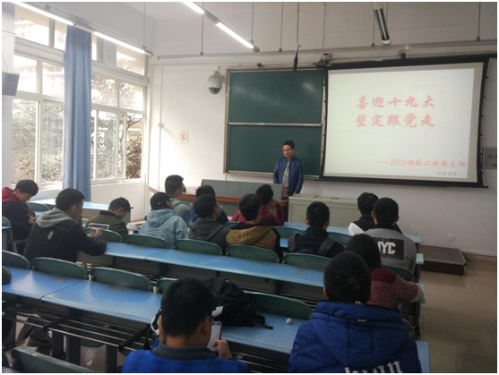 在活动中,首先由班长和团支书向大家介绍了中共十九大会议的核心内容与思想,回顾新中国在党的领导下取得的辉煌成就,同时,我们也要不忘初心,坚定跟党走,走有中国特色的社会主义道路。