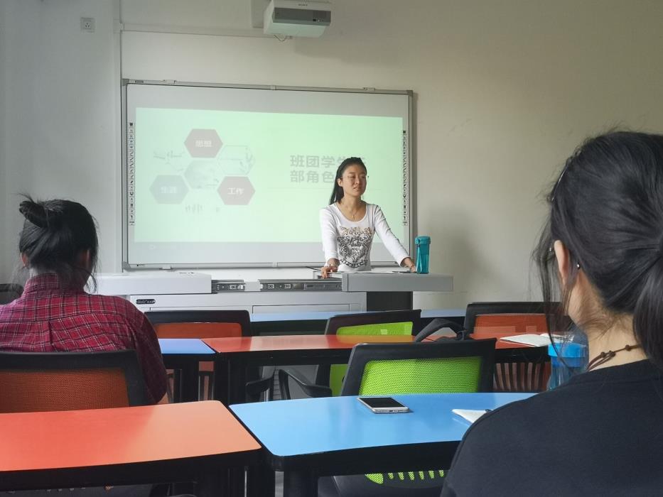 李晓宇老师为大家介绍了“菁英课堂”对班委的意义,“菁英课堂”是学院为提升班委能力而开设的一门系统培训课。紧接着,李晓宇老师让同学们思考当选班委的最初目的,同学们积极回答,表明自己为何想要当选班委。在大家相互交流分享之后,老师肯定了大家的回答并总结出大家当选班委是的最主要原因是为了锻炼自己。她告诉同学们,当班委可能会辛苦,但这份工作能一步步的完善自己,收获成长。