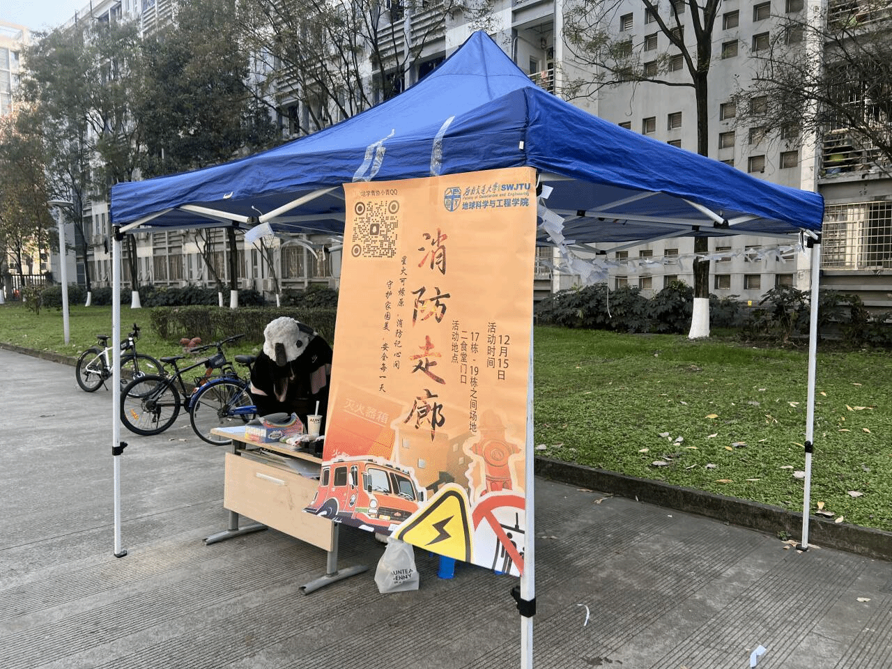 活动当天上午 9 点,南区二食堂和北区园区活动现场布置一新,帐篷、桌椅有序摆放,消防安全知识题目及相关资料悬挂四周。志愿者们热情地向参与者发放答题卡和笔,并详细介绍答题流程。同学们认真阅读题目,积极作答,题目内容涉及火灾预防、逃生技巧、灭火器使用等实用消防知识。答题结束后,志愿者仔细核对答案,并根据得分发放相应奖品。现场还设置了消防器材展示区,志愿者为驻足观看的同学们耐心讲解消防器材的使用方法和注意事项,气氛热烈非凡。