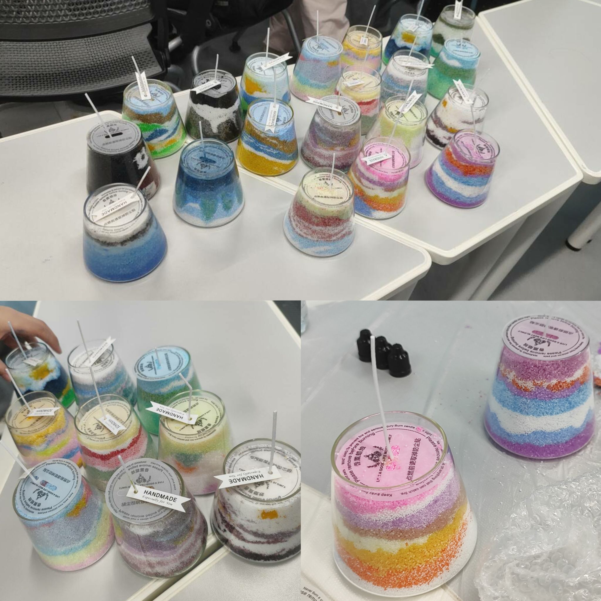 同学们分组制作沙画香薰,通过手工绘制沙画,并滴上心仪的香薰精油。这一环节将手工创作与心理隐喻结合,将难以言说的情感具象化,达到宣泄与疗愈的效果。
