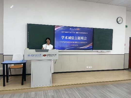 在班会的最后阶段,刘静老师对同学们提出了几点建议。她强调了遇到困难时积极寻求祖国、学校和老师亲人的帮助与支持的重要性,鼓励同学们在美学习期间保持与老师和家人的密切联系,互相帮助,共同维护交大学子的良好形象,努力学习以不辜负期望,并再次强调了学术诚信的重要性以及维护祖国形象的责任。