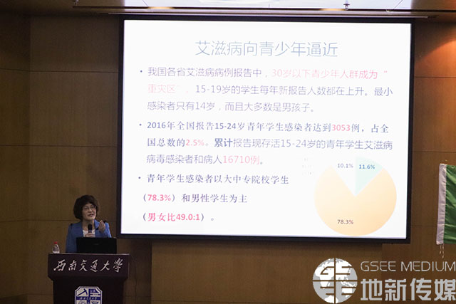 10月17日晚7时,地球科学与环境工程学院于图书馆一号报告厅举办了“青春同路·与艾同行”入学教育宣讲活动及心理健康教育。成都市疾控中心性病与艾滋病防制科科长何勤英、18H