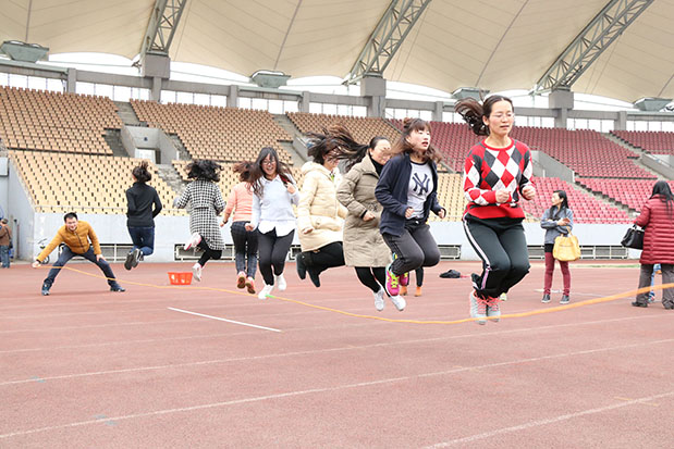 女教职工在集体跳绳中荣获好成绩,并获得精神风尚奖。