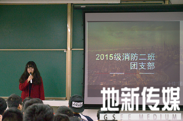 各支部风采展示颇具特色,且现场口号声激昂,此起彼伏。其中2015级消防2班在才艺表演阶段独辟蹊径,采用提前录音,现场同学场景再现的方式,向在场同学展示班级的姿态。而2015级消防1班在他们报告最后,在《老男孩》的歌声中班上同学分列出现,给现场带来了小小的震撼。每一个介绍者始终保持认真、活泼的态度,向在场的每位展示着各班最美好的姿态,并赢得了现场阵阵掌声。