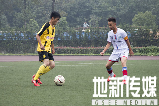 在主持人介绍了双方的首发阵容后,比赛正式开始。此次比赛两方队员均采用3-2-1阵型。随着裁判的一声哨响,两支球队迅速进入比赛状态。黄队凭借巧妙的攻略,熟练的脚法,默契的配合,多次突破对方的防线,守方也不甘示弱,门将屡次飞扑将球拦下。其中,黄队前腰7号势如破竹,一个漂亮的回旋踢赢得了在场同学的欢呼声。比赛进行的如火如荼,在黄队快要进球瞬间,白队一个侧踢成功阻拦进球,双方僵持不下。40分钟后,上半场比赛结束,两队均未得一分。次轮比赛,纵然黄队屡占先锋,然而白队守门员以敏锐的判断力死守球门。休息10分钟后,下场比赛开始,两队均未换球员。比赛7分钟后,黄队11号罚球获得整场比赛第一分,场下观众席激情澎湃,为队员们呐喊助威。足球比赛,受伤在所难免,白队21号踢出的球正对黄队5号胸口,然而他并未申请离场,仍旧坚守在自己的位置上。5点42分,白队10号突破重重阻碍,在队友们的短传下成功将球踢进网内,为白队取得一分,此后白队士气大增。比赛继续进行,此时双方队员体力透支,筋疲力竭,部分队员多次摔倒在绿草坪上,却还是咬紧牙关继续站起。随着下半场比赛结束,备受期待的点球大战一触即发。黄队1号、6号、12号、9号皆成功进球,白队21号、13号为本队夺得两分。最终,黄队凭借点球中的优异表现,领先白队2分获得胜利。