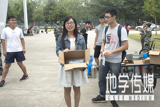 值得一提的是,翟琦一行慰问团队对垃圾进行了回收,垃圾全集中放到纸箱子里。他们送出共450只冰棒,百余个纸杯被利用,但地上并没有留下垃圾。这体现了地学人的高素质,并为新生们树立了“懂文明,讲卫生”的好榜样。