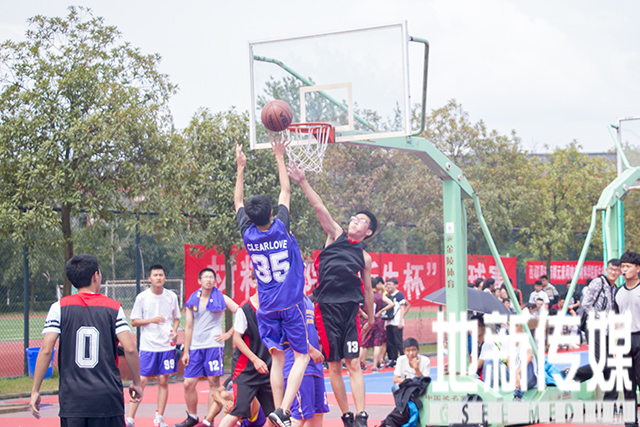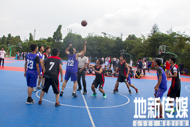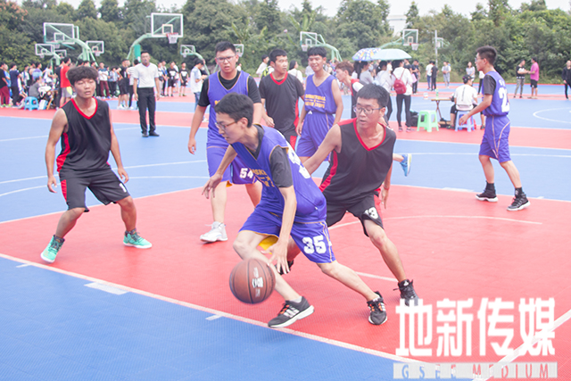 9月19日中午12时,2016届地球科学和环境工程学院“新生杯”篮球赛在学校南区体育场拉开序幕。地球科学和环境工程学院院党委副书记傅尤刚、2016级辅导员翟琦老师和李婧老师亲临现场,为广大运动员同学加油助威并积极鼓励更多的同学参加这次篮球赛,以达到强健体魄与增进友谊的双重效果。第一场球赛是环境5班与地质1班的对决。环境5班队员身着紫色队服,地质1班身着黑色队服。最终环境5班以23:15战胜地质1班,获得了首胜。