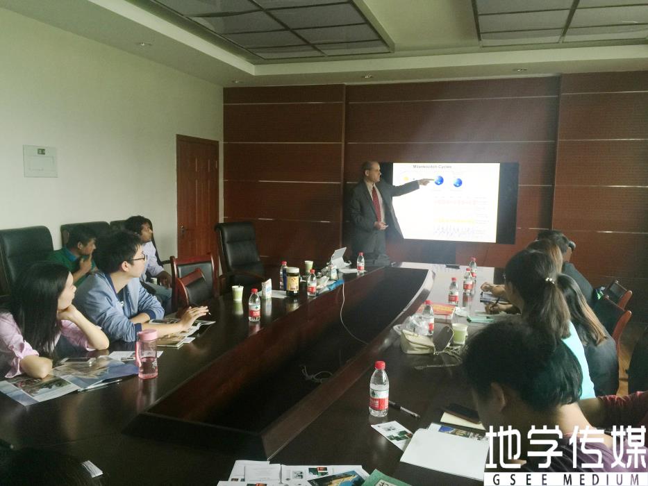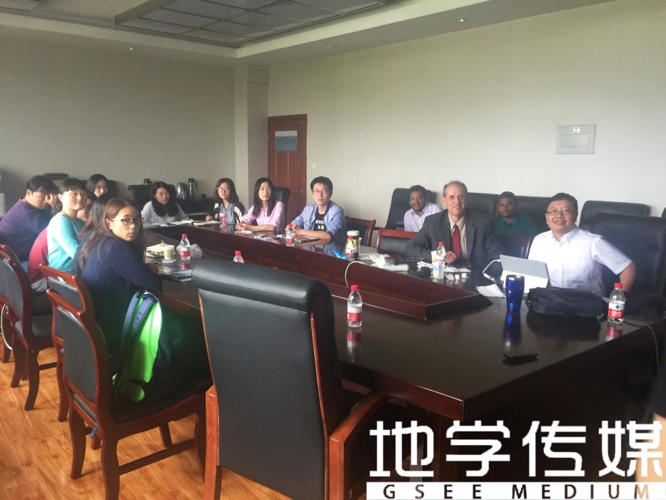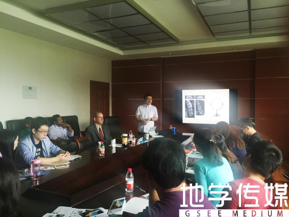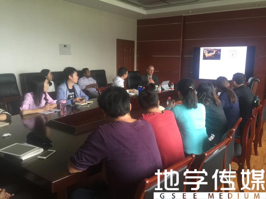 Peter教授主要介绍了阿肯萨斯大学的概况以及他的主要研究方向,向大家讲述了环境变迁导致的牙齿的变化与人类进化的关系,激发了同学们浓厚的兴趣。随后,范美坤教授向Peter教授介绍了我院环境工程专业的概况、范美坤教授个人的研究内容与研究方向,并安排当天下午陪同Peter教授参观我院实验室。