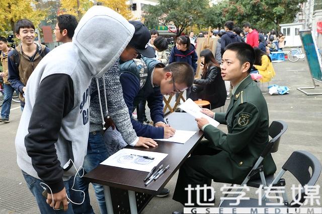 虽然天气冷,但看着帅气的国防生们坐镇,大家报名的热情还是很高的,第一天结束已经有许多同学积极踊跃的报名,听工作人员说总人数会有上限的,所以还没报名又有兴趣的同学抓紧时间啦,25日中午和下午在二、四食堂门口现场报名!