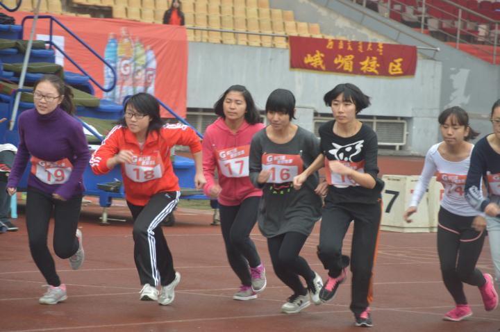 2015年11月14日中午十二时五十分,天空已然放晴,但跑道上的水任然显而易见。代表我院参加校学生会女子800米比赛的参赛选手已经做好了准备,即将进入起跑点。在总裁判说明了比赛的规章制度和注意事项之后,选手们做好了热身运动,跨上跑道。