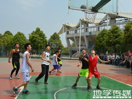 篮球赛在北区篮球场正式开赛,由于其他学院比赛也正在进行,此时的北区篮球场人声鼎沸。12点30分比赛正式开始,黑队为14级测绘一、二班对红队13级地质一、二班。