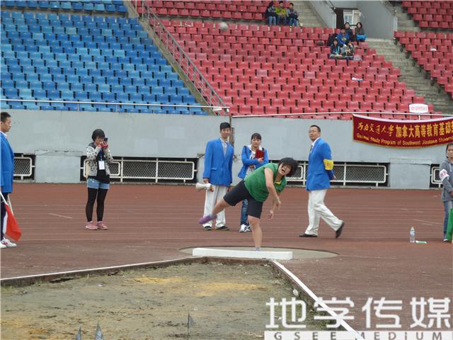在投掷过程中,同学们都使尽全力,将铅球抛至远处。每一次激动人心的一掷,每一条优美的空中曲线,都引来观众阵阵欢呼。随着赛场上记录分数的小旗越插越远,同学们的欢呼声也越来越高,第三轮掷球,几乎每一球落下,都能刷新选手自己上一次的成绩。最终由来自峨眉校区的李奕冉、张梦乡和来自电气学院的陶孟兴分别以8.76米,8.57米,7.99米的成绩获得冠亚季军。