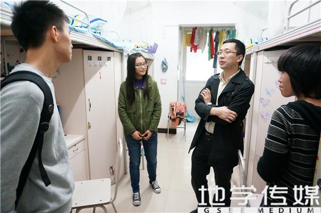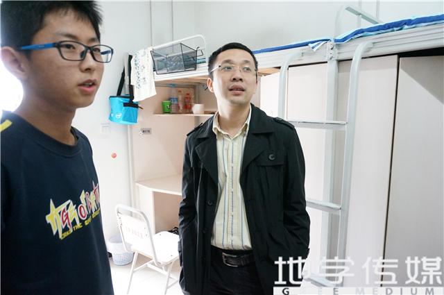 接着,傅老师一行来到16号楼的男生寝室。傅老师特别表扬了参加寝室装潢大赛的同学们,并说道:寝室干净整洁,才有良好的学习生活氛围。在安全方面,傅书记对大家特别强调,出门前,电脑、钱财等贵重物品一定要锁好,并反锁好门窗;必须随时警惕各种传销类组织。傅老师还关心同学们的业余生活,和同学聊起了他们的日常兴趣。对于男生,傅老师语重心长地说道,打游戏一定要有节制,切记不能因此荒废学业。