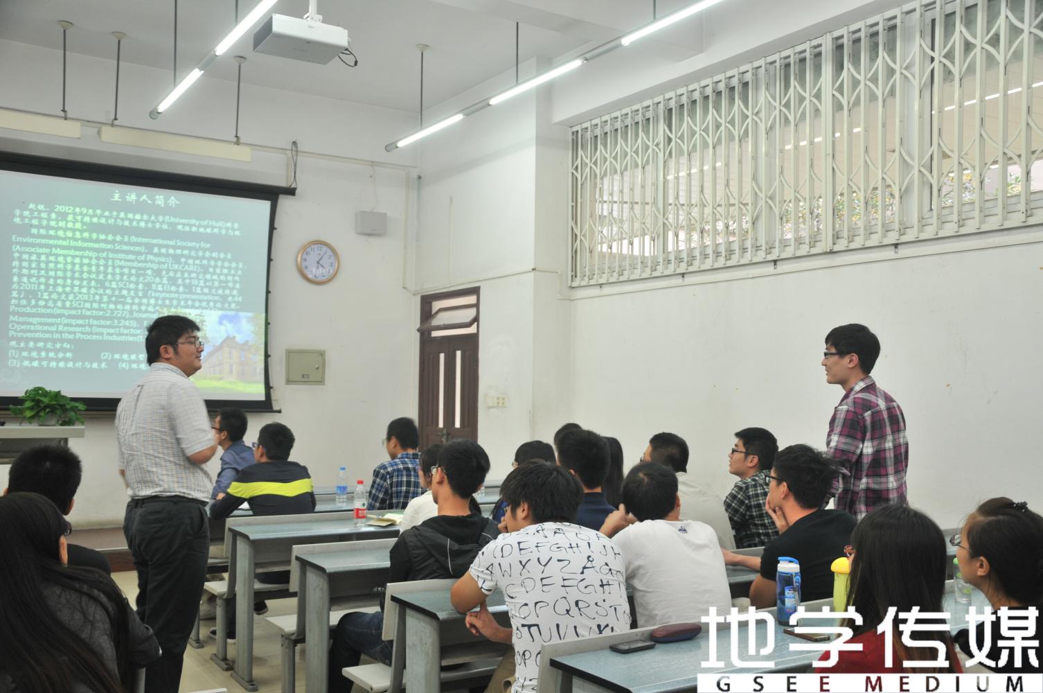 讲座上,在轻松活泼的开场白之后,毕业于英国赫尔大学、获得可持续设计与技术博士学位的赵锐副教授首先结合自身的留学经历,从学习和生活两方面为同学们带来了精彩演说。他通过一幅简单的抽象画,现场抽样,了解大家的看法,并从研究的角度,谈了对画面的不同观点体现出的研究深度、广度和态度等问题,鼓励同学们正确认识自身从困惑、深化到最后定位这一系列过程;他还强调在学习和生活中,态度(motivation)和心态很重要,要明白自己的目标,积极乐观,并和导师保持亲密的沟通交流,他表示自己乃至现在都深深受益于在英国的留学过程中导师给予的精神和知识财富。随后他认真倾听现场同学的关于专业和学习方面的疑问,给予大家详细而深入的答复。