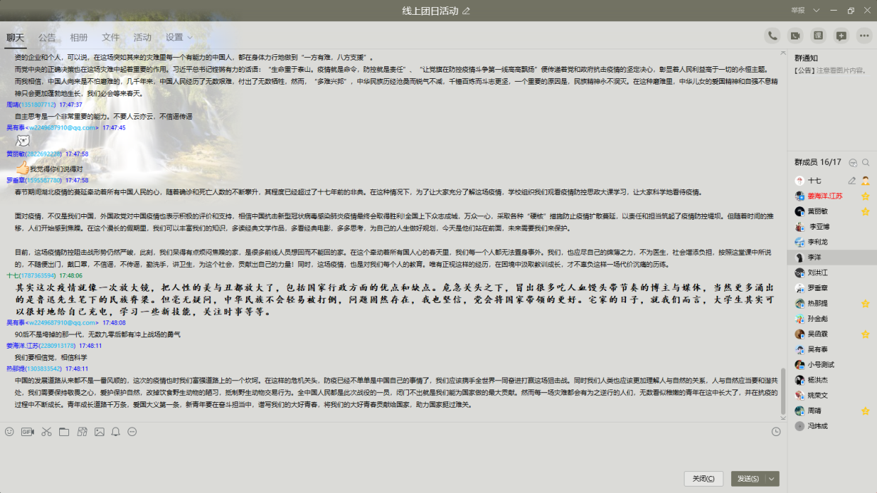随后,大家一起观看回形针“有关冠状病毒的一切”视频,并在群里积极讨论疫情下自身的反思。
