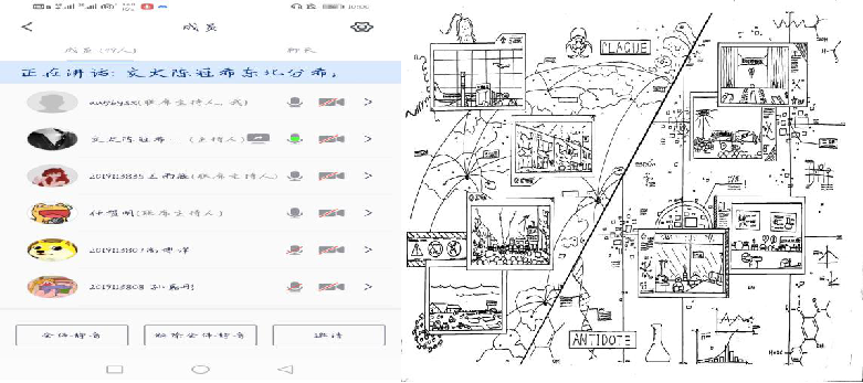 活动最后,同学们接通视频聊天讨论交流感想,从个人,家庭说起,讨论了当下疫情对自己生活和学习的影响,再由个人延伸到社会,国家,乃至国际,同学们认识到,在当下这种紧张的大环境下,我们大学生应该承担起应该承担的义务,不传谣,不造谣,做好自己,努力学习,泰山崩于前而面不改色,相信祖国,相信党的决策,服从党的领导。