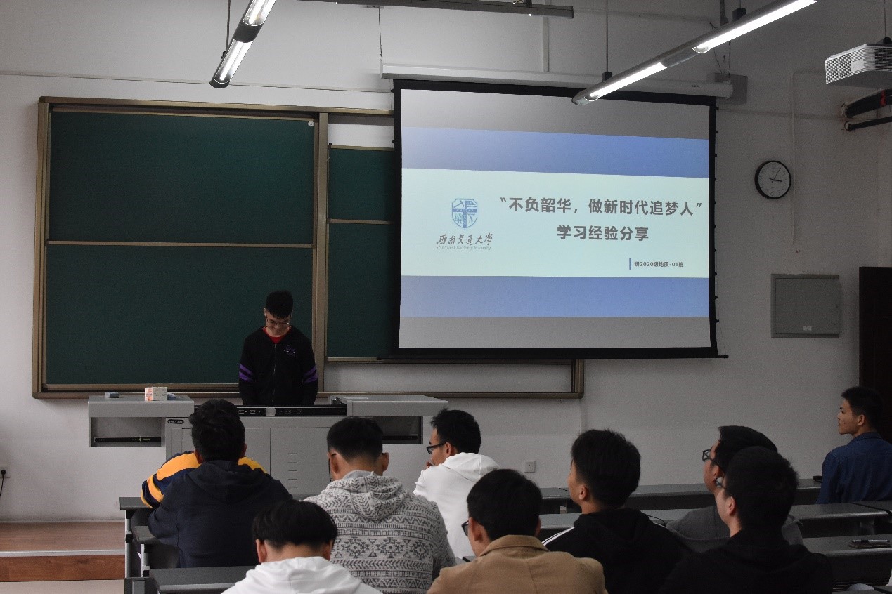研20级地质一班于X9205开展名为“不负韶华,做新时代追梦人”学习经验分享会,会议由班级学习委员邓威同志主持,并邀请到两位研二学硕和专硕优秀学长余军炎、范祥泰做学习经验分享,班级全体同学参会。