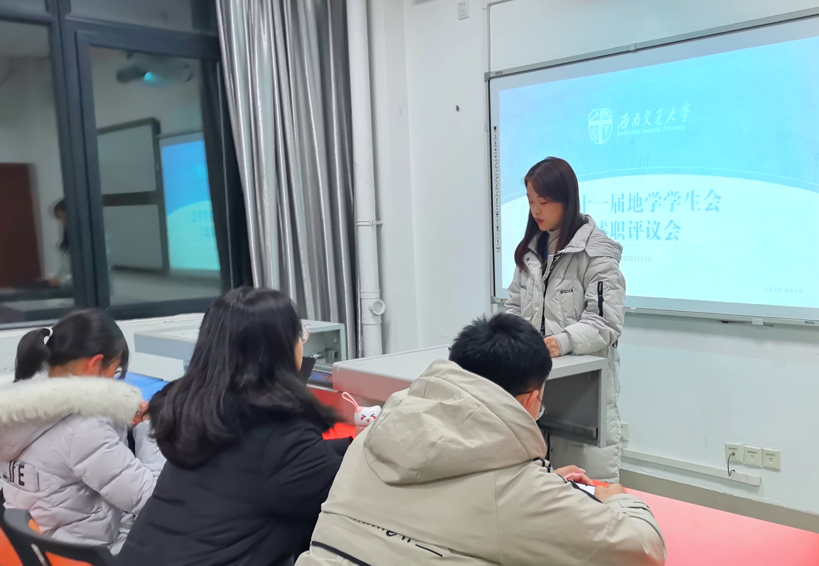 2020年12月3日21点30分,2020届地学学生会指导老师董可老师,主席刘睿智、霍东峰,宋盼盼,及各部门部长于X4132召开了第十一届地学学生会述职评议会。会议过程中,我们分别进行了18H