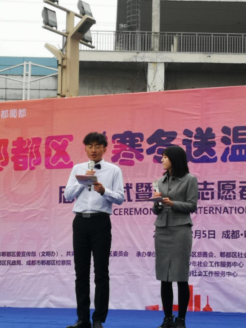 大爱郫都,善满鹃城。寒冬送暖,爱传递,志愿服务,暖人心。旨在为特殊儿童送关怀,宣传国际志愿者日,2020年12月5日,由郫都区民政局、郫都区团委、郫都区检察院联合主办 “寒冬送温暖·爱传递”启动仪式暨国际志愿者日宣传活动在郫都区万达广场开展。
