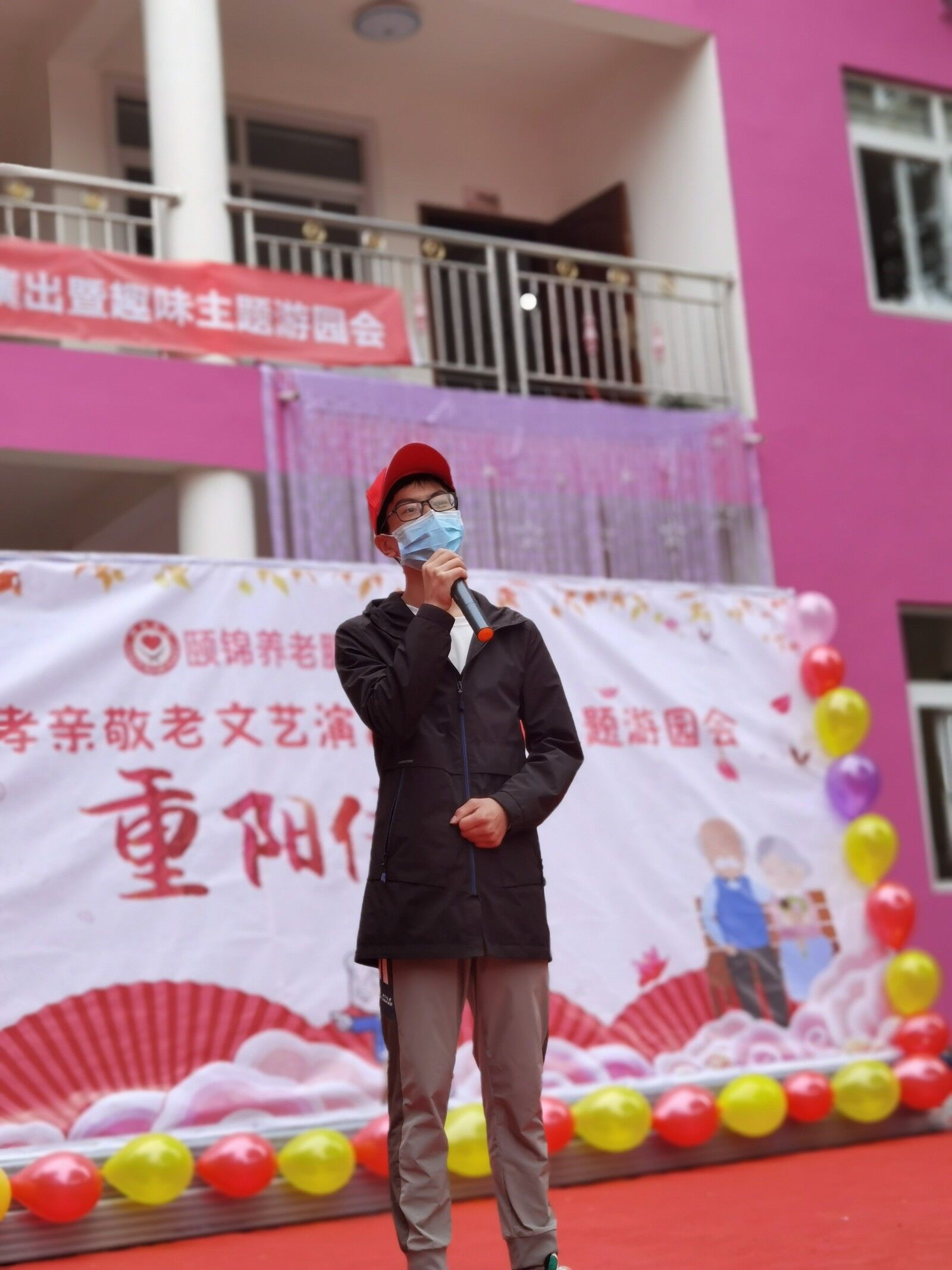 节目环节中,志愿者们为老人们表演了集体歌舞节目《重阳献歌》,在经典曲目《爱我中华》的旋律响起时,不少老人主动跟唱,给志愿者捧场。活动进入到游园会环节,现场更是热闹非凡,志愿者们在已经安排好的分工下各司其职引导老人参与猜字谜歌名、夹弹珠、垃圾分类等游戏、维护现场秩序、给老人发放游园奖品,让大部分老人都能参与,保证活动安全有序。十一点半游园会结束后,志愿者协助整理好活动现场,向社工及老人们辞行,骑自行车返回学校。