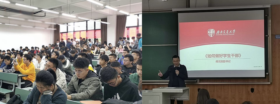 犀浦校区X4151教室,开展了第九届青马工程菁英课堂开课仪式,本次仪式由傅尤刚书记,周青老师作为主讲,讲述了如何做好学生干部工作,如何贯彻四个意识,五个过硬成为一名有能力,有信念的优秀干部。18H