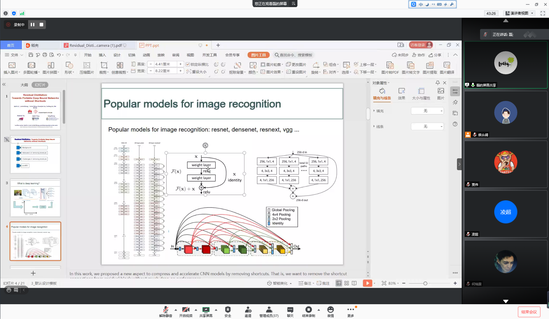在学术素养和科研能力提升方面,研20级测绘三班结合测绘类专业前沿知识和发展方向,以及同计算机视觉、机器学习、深度学习、数据库建设等领域联系越来越紧密的情况下,积极联络邀请CV、CS、深度学习等领域的专家学者进行交流分享,拓宽计算机技术的掌握与学习,邀请西湖大学深度学习实验室张军磊博士就深度学习、模型压缩等内容展开交流。