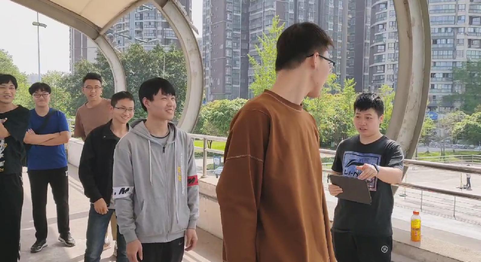 下面,是你比划我来猜环节。每班各出5人参加比赛,由裁判出题,选手用肢体动作演绎传达给下一名选手,由最后一名选手给出最终答案。虽然是比赛,但同学们都拥护在周围发出阵阵欢笑声,拉近了互相之间的距离。