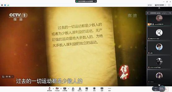 大家在线上会议观看了由中央组织部、中央文献研究室、中央党史研究室、中央电视台联合摄制的历史文献纪录片《信仰》,该片分“只要主义真”、“壮志换新天”、“时代先锋行”3部分,以党的90多年历程为背景,采用“大背景、小细节”的表现手法,通过讲述革命、建设、改革各个历史时期优秀共产党员的感人故事,深刻阐述了共产党人的核心价值观。