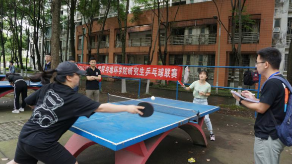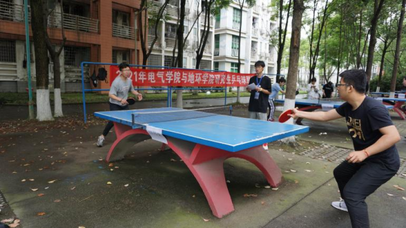 鸿哲斋四栋后身乒乓球活动区开展2021年电气学院与地环学院研究生乒乓球联赛。