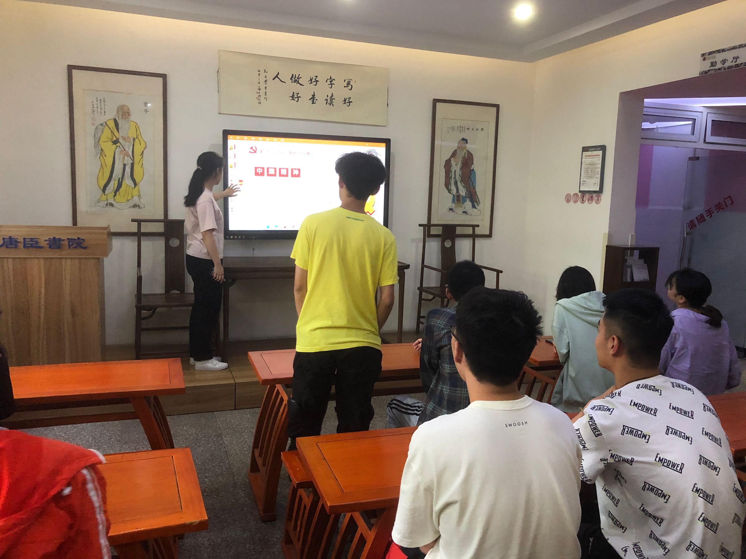 最后,刘珈雯带领大家认真分析了五四运动的性质特点,告诉大家由于五四运动是在新的社会历史条件下发生的,所以它具有以辛亥革命为代表的旧民主主义革命不具备的一些特点。主要体现在五点上——表现了反帝反封建的彻底性;是一次真正的群众运动;促进了马克思主义在中国的传播及其与中国工人运动的结合;由学生先发起,由工人扩大的坚决的反帝运动,是无产阶级领导的新民主主义革命;是新民主主义革命阶段的开端。在学习完五四运动的特点后,刘珈雯同学带领大家重温了入团誓词。大家热情洋溢,其中万润蓬表示任何时代的青年和学生都应该认真学习五四精神,为共产主义事业而奋斗!