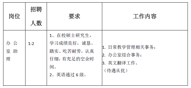 为给学生提供更多的社会实践机会,协助项目办公室做好相关工作,提高办事效率,现面向全校学生招聘办公室助理,具体通知如下: